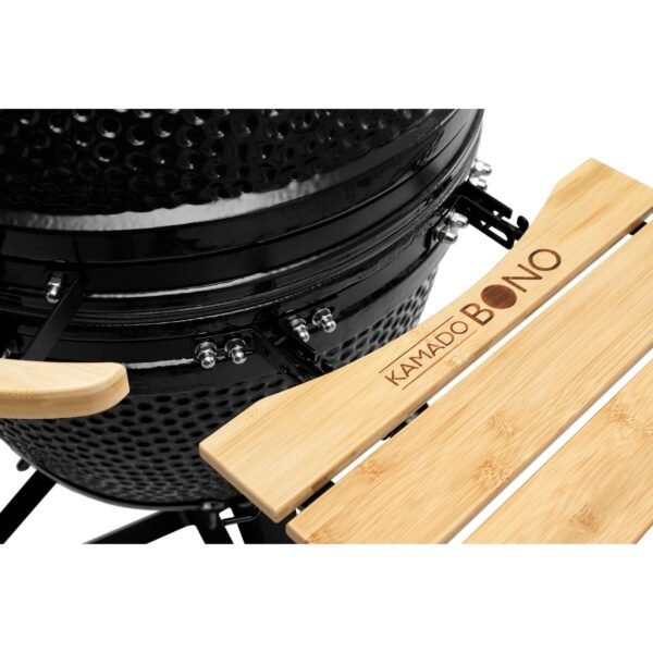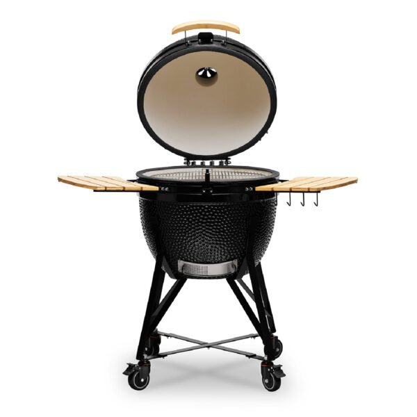 Kamado Bono is a 3-in-1 outdoor grill, oven and smoker. It is the largest Kamado Bono grill with an extra large cooking area. It is perfect for a backyard, a patio, a holiday home or a catering establishment. For a natural person, all ceramic parts come with an unlimited warranty.