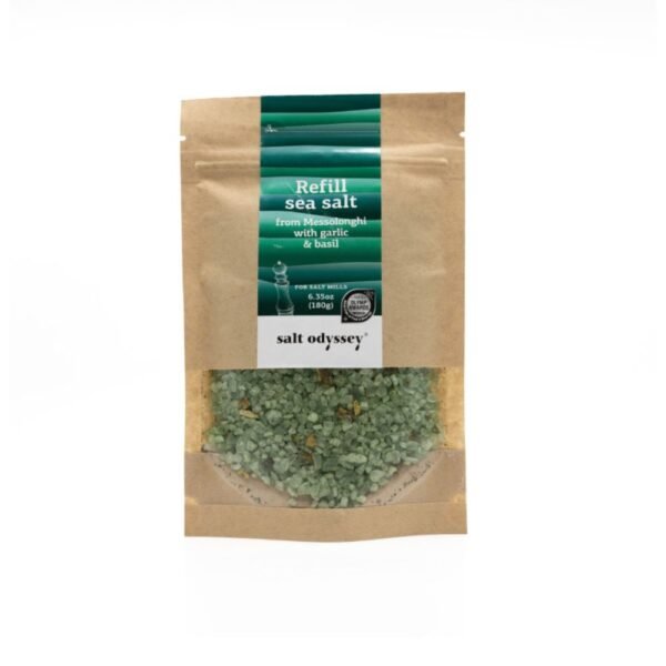 • Ingredients: 100% pure sea salt from Messolonghi, garlic, basil