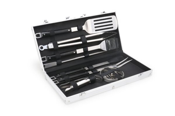 Set of grilling tools Zalgiris. Top quality wood and stainless steel grilling tools in an aluminium case with Zalgiris Basketball Club logo. The set includes: