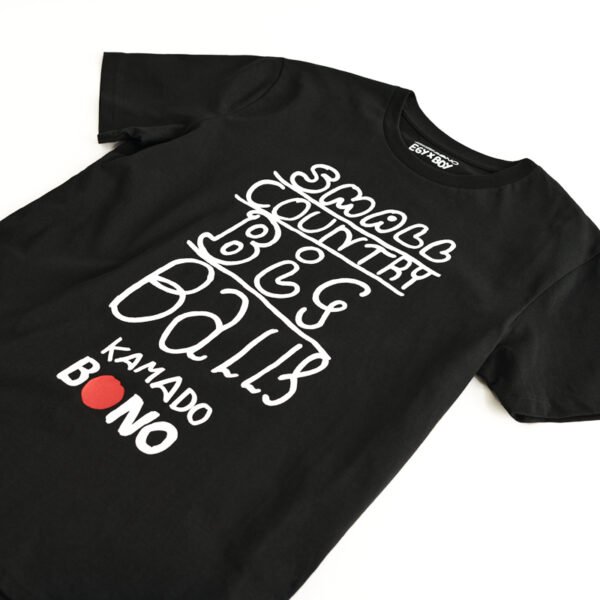A high-quality, stylish unisex T-shirt with the printed text ‘Small country big balls’ – for both men and women. This unique T-shirt is co-designed with the creative and artistic brand EgyBoy.