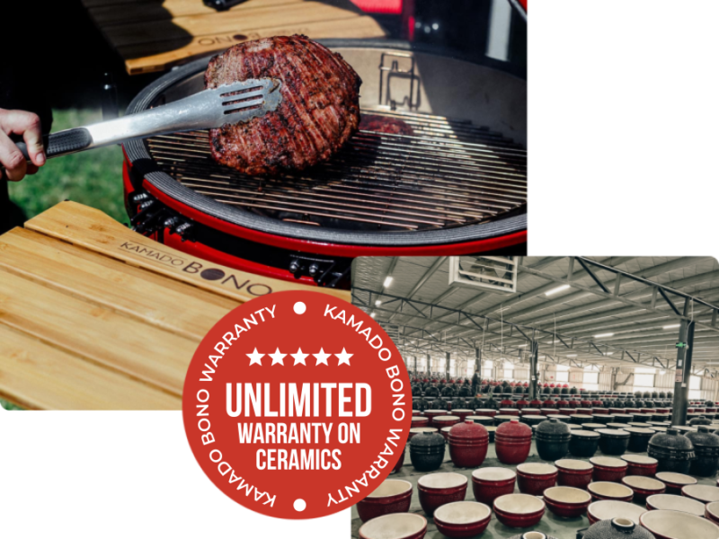 The warranty is valid in all cases when the grill or its parts are used as intended, following the manufacturer’s instructions, the two-zone cooking system guide, and Kamado Bono’s recommendations